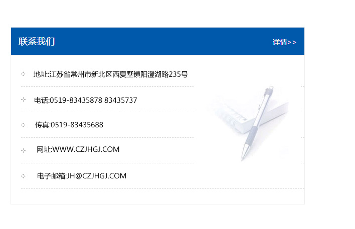 地址:常州市新北區友邦商務大廈1幢16、17層  電話:0519-85101652  傳真:0519-85112595  郵編:213022  網址:www.cz-jiayue_cn.szkung.com  郵箱:xiajifengaa@163.com